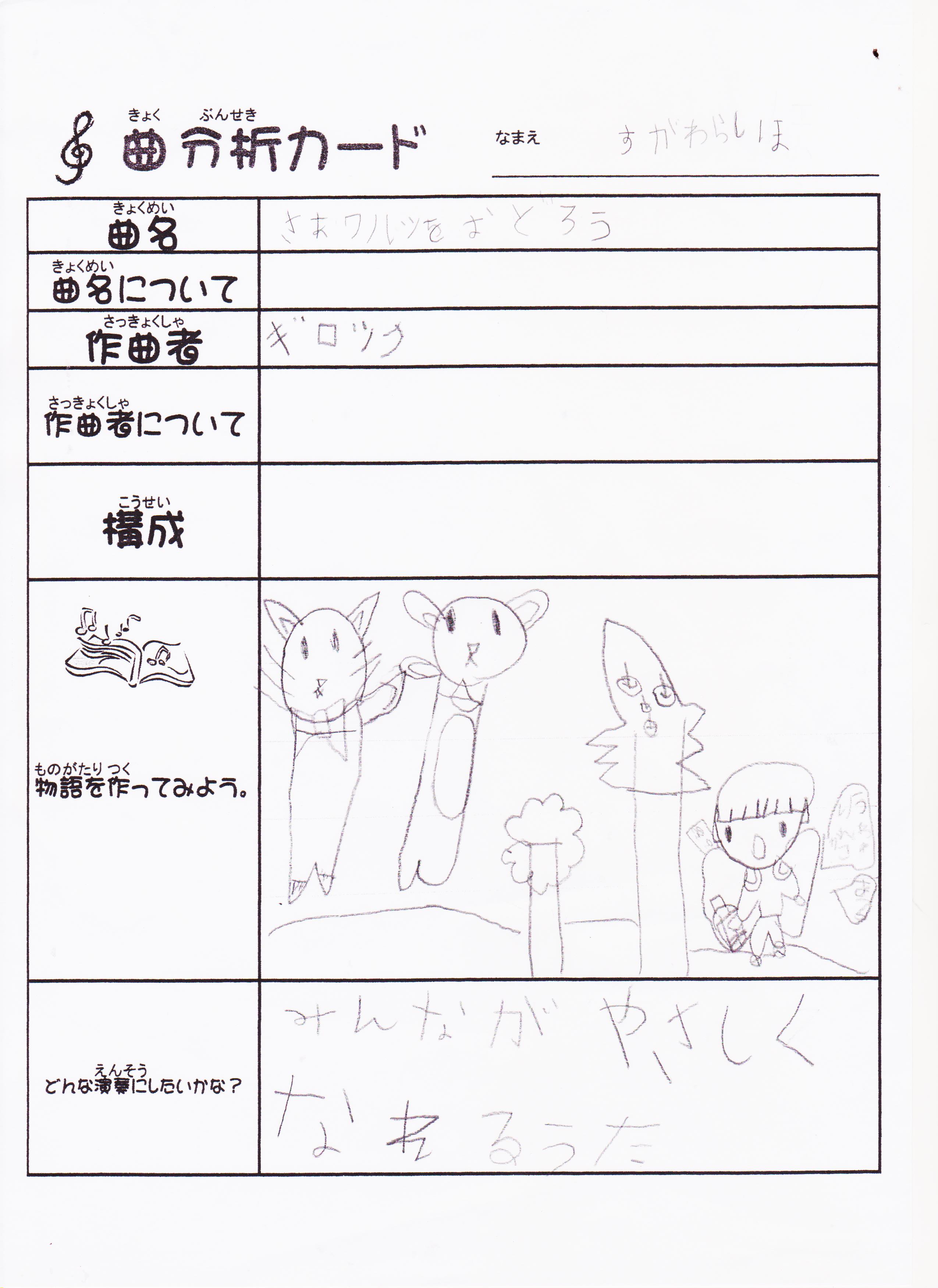 自分の曲を分析して発表した曲分析カード。