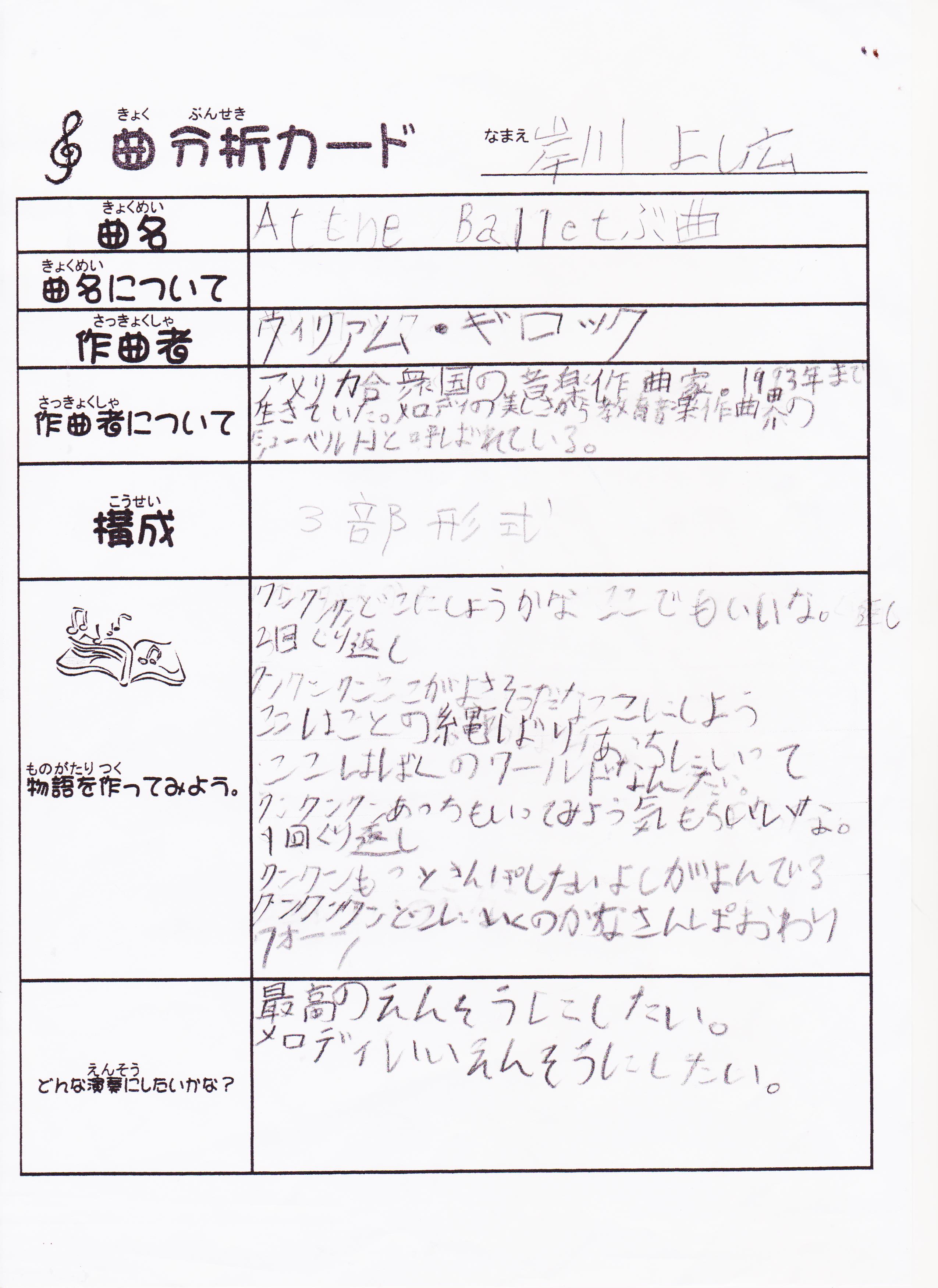自分の曲を分析して発表した曲分析カード。