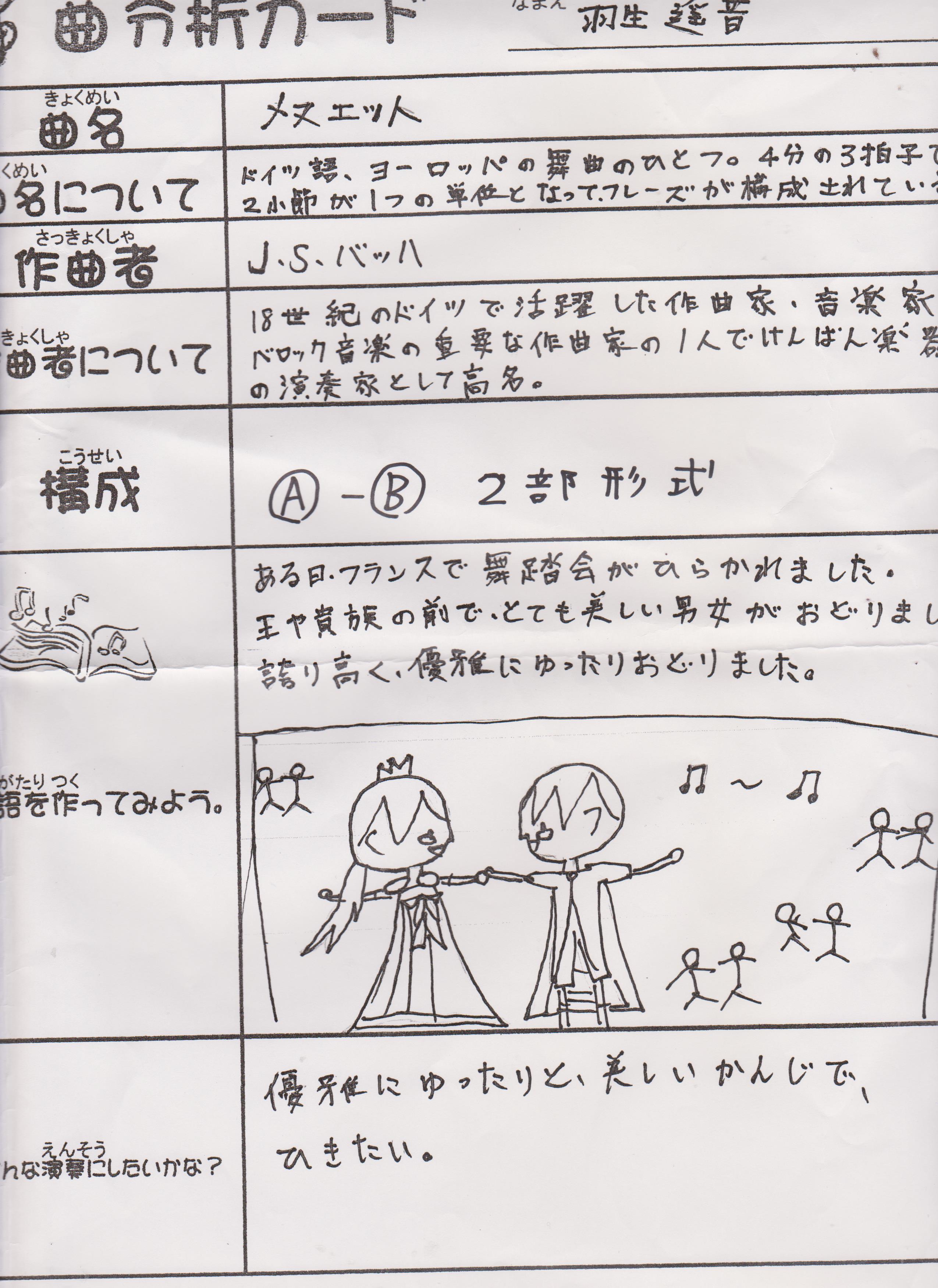 自分の曲を分析して発表した曲分析カード。