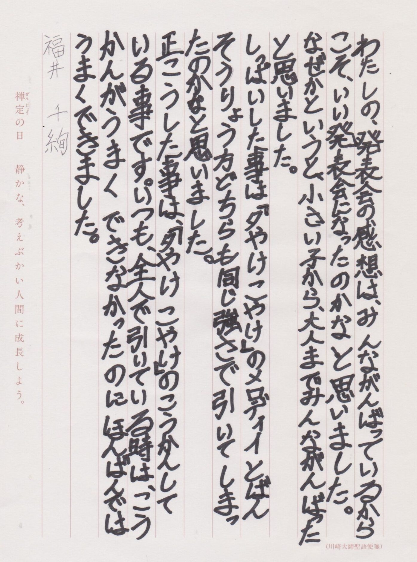 本来は、先生もちゃんと椅子に座って演奏すべきです。