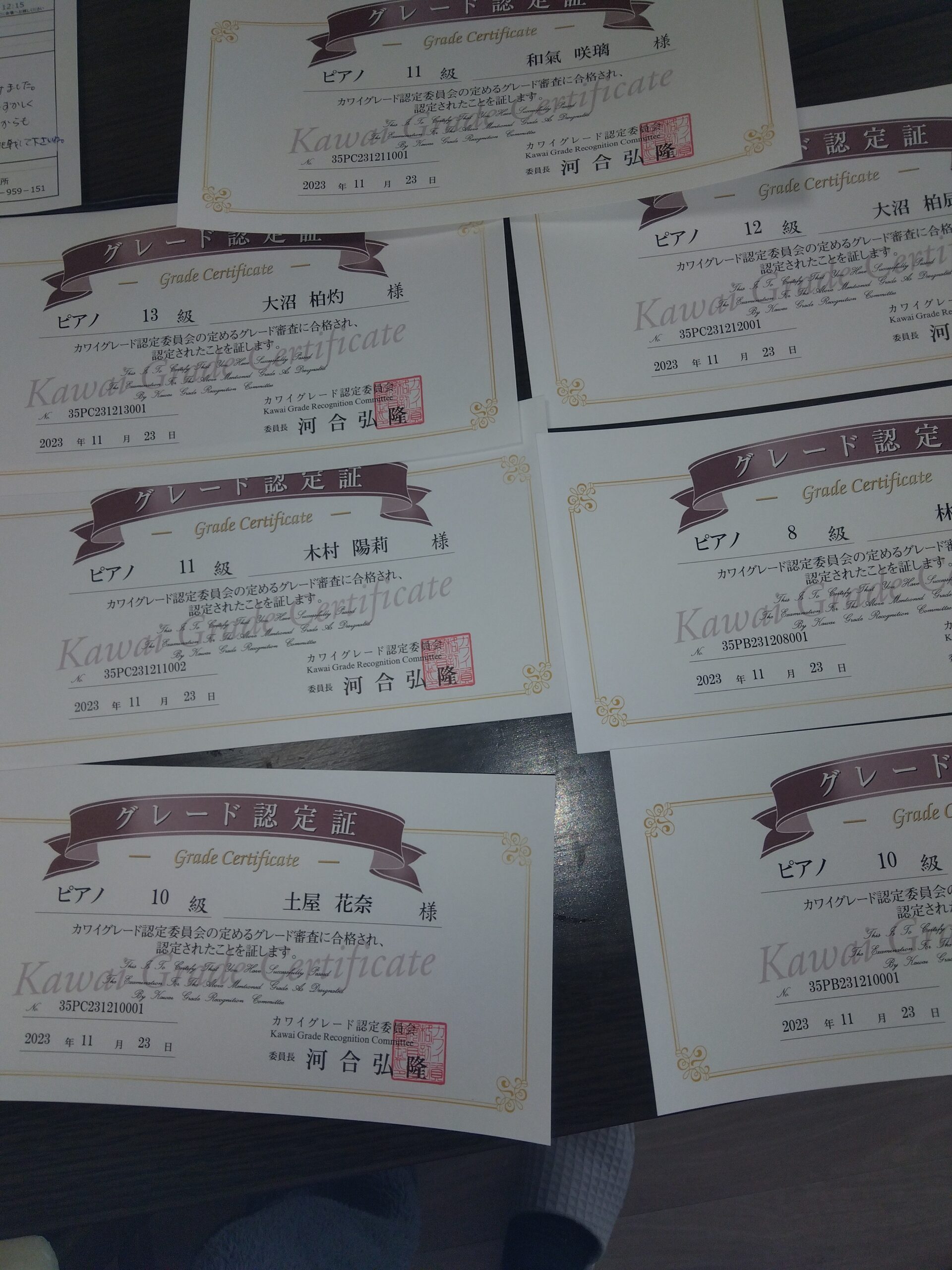 本日、これからカワイグレードテストに 7名の生徒さんが参加します。